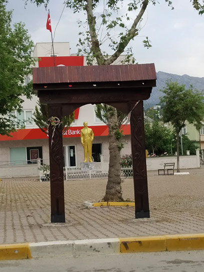 Gebiz, called Macarköy (Hungarian village) by locals is situated around 40 kilometers from the city of Antalya. According to local oral history, Hungarian people settled here in the early 18th century. The sister village of Gebiz, Csíkszentdomokos placed a Seclar gate in memory of the legend of the Hungarians in Gebiz, which still stands on the main square of the village.