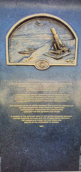 In memory of the artillery units of the Austro-Hungarian Monarchy fighting together as allies with the Ottoman Empire defending the Dardanelles during the First World War erected by the Government of Hungary.