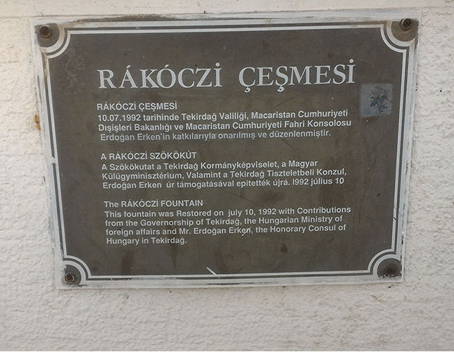 Latince Kitabesinin tercümesi: “Ey insan, senin hararetini söndüren bu çeşme önce Prens Ferenc Rákóczi tarafından akıtılmış ve yapılmıştır.“