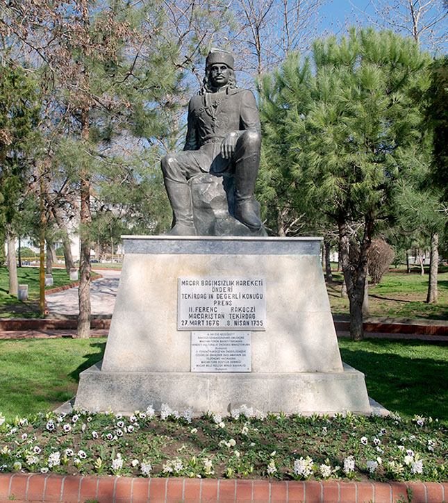 Franciscus II Rákóczi, leader of the rebel Hungarian armies against the Habsburgs and last duke of Transsylvania, stayed in Tekirdağ for one and a half decade. He passed away in the Turkish city on 10th April 1735. His court was an important diplomatic meeting point, while his huge library a proof of his interest in culture. Tekirdağ thus became a relevant cultural centre for Hungarians in the first half of the 18th century. The memory of Rákóczi is not only preserved in his museum, but also on the seashore, with his statue in the Peace and Freedom Park (Barış ve Özgürlük Parkı). The statue is the work of Turkish sculptor Sait Rüstem, and was inaugurated on 4th July 1994.